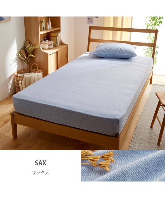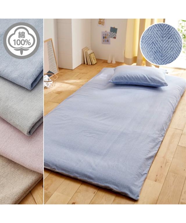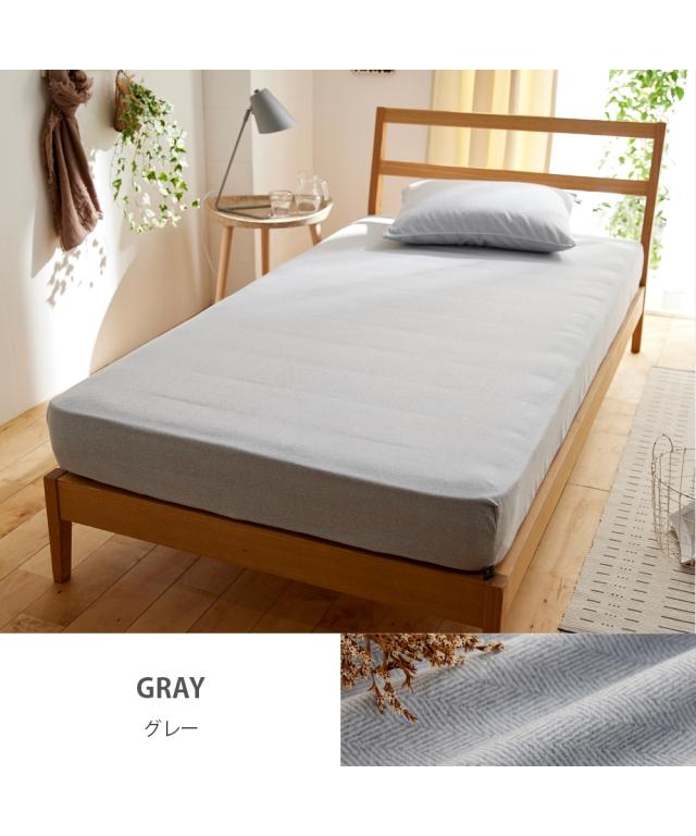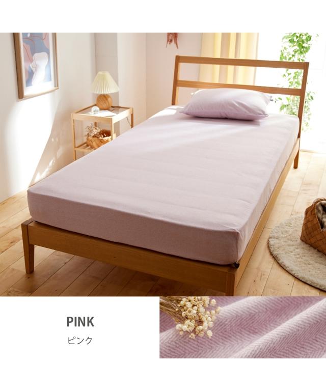 シーツ 心地よい 綿100% 起毛ヘリンボーン柄 ベッド マットレス用 グレー/サックス/ピンク/ベージュ シングル ニッセン nissen