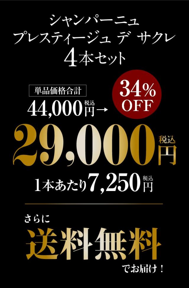 1本あたり7,250円(税込) 送料無料 プレスティージュ デ サクレ コンプリート 4本セット 750ml シャンパン 浜運