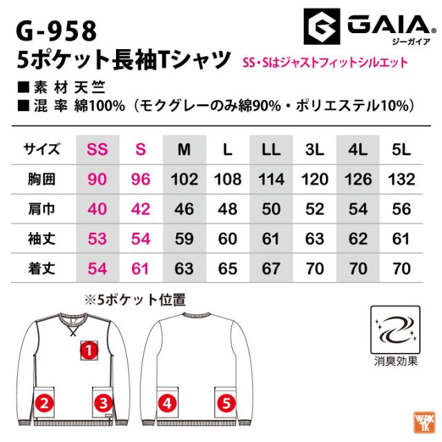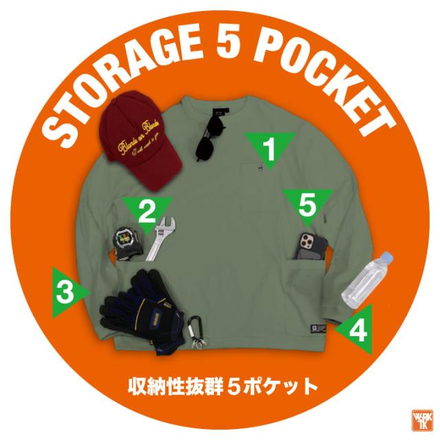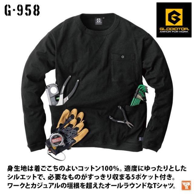 G-958 収納性抜群!! 5ポケット 長袖Tシャツ 綿100% 男女兼用 GLADIATOR CO-COS