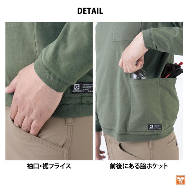 Tシャツ 長袖 綿100% カットソー トレーナー スウェット オーバーサイズ ゆったり ビッグシルエット 5ポケット付き 作業服 作業着 カジュアル メンズ レディース 春夏 秋冬 グラディエーター コーコス cc-g958
