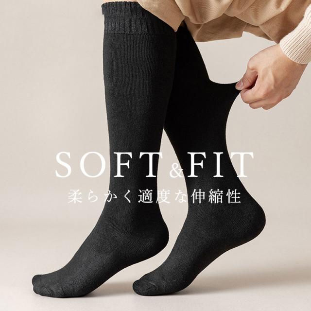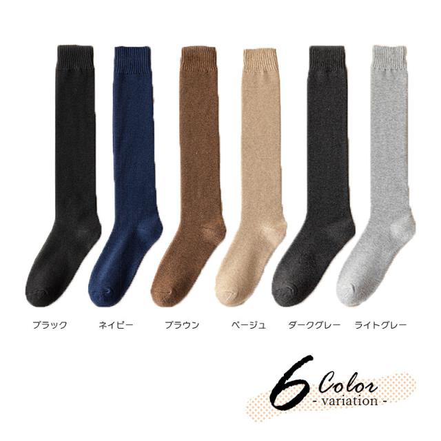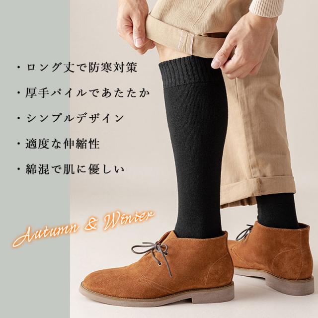 【メンズ用】ハイソックス 靴下 あったか 裏起毛 厚手パイル 全6色 綿混 秋冬 防寒 冷え対策 アウトドアにも ロングソックス