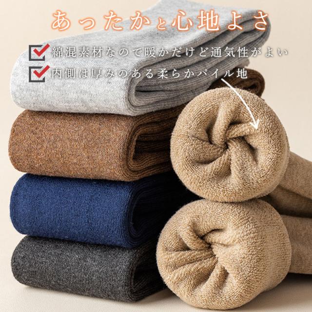 メンズソックス 靴下 あったか 裏起毛 厚手パイル 全6色 綿混 秋冬 防寒 冷え対策 アウトドアにも