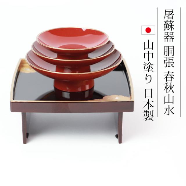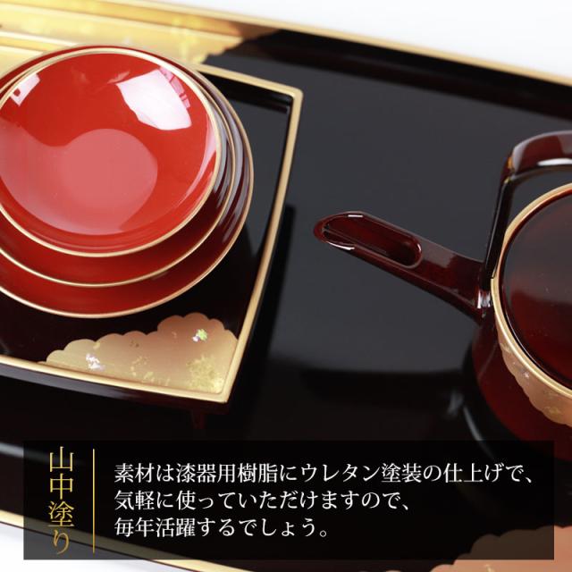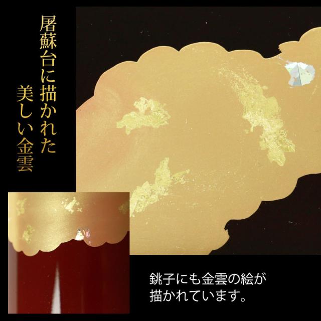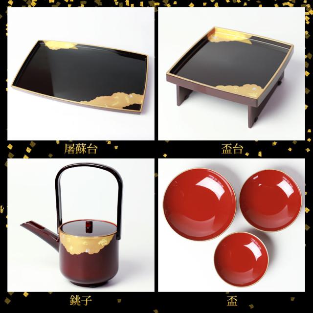 日本製 屠蘇器 胴張 溜金雲 枠足 四ツ揃 山中漆器 山中塗り お正月 お屠蘇 おとそ とそき 盃 日本酒 酒器 正月 お祝い 新春 新年 おもてなし k_name