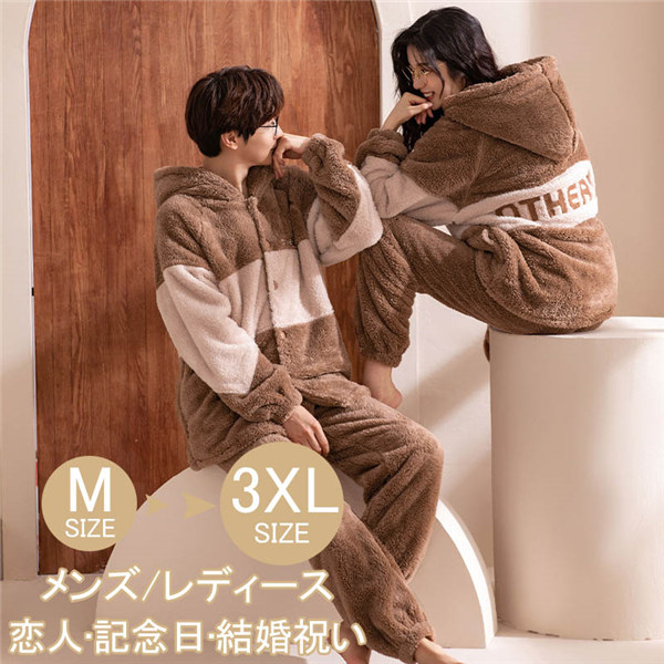 裏起毛 厚手 着る毛布 ペア パジャマ もこもこ フリース カップル ルームウェア 長袖 冬向き 部屋着 寝間着 かわいい 上下セット メンズ レディース プレゼント 結婚祝い お揃いパジャマ 長ズボン ec157g4g4c0