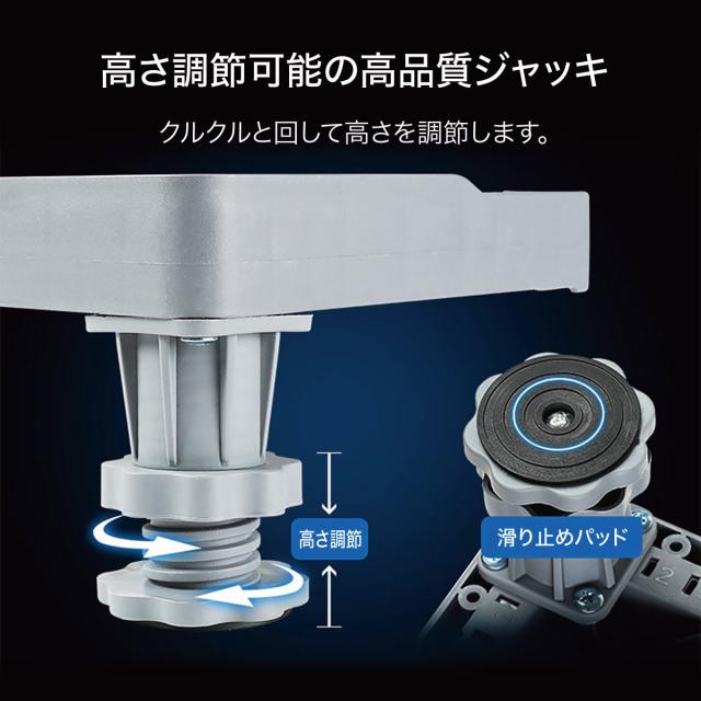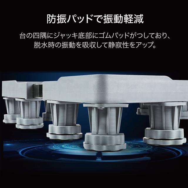 【防振パッドで振動軽減】8足で頑丈に支えるジャッキ底部にゴムパッドがついており、脱水時の振動を吸収して静寂性を軽減します。