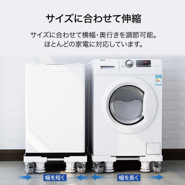 【サイズに合わせて伸縮】サイズに合わせて横幅・奥行きが調整可能。ほとんどの家電に対応しています。