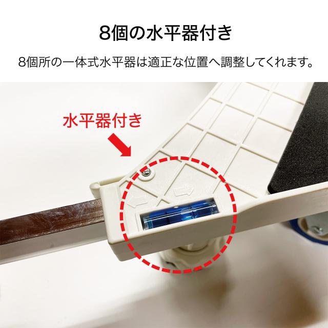 【8個の水平器付き】8箇所の一体式水平器は適正な位置へ調整してくれます。