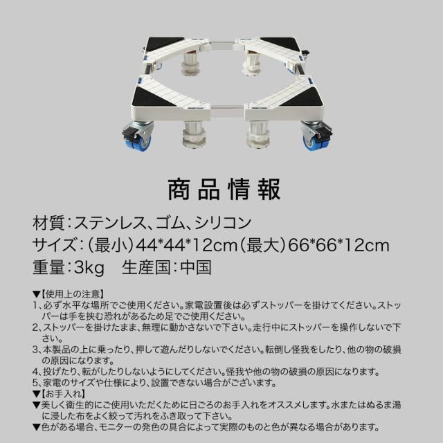 洗濯機 置き台 キャスター付き 8足8輪 洗濯機スライド台 洗濯機台 洗濯機ラック 洗濯 キャスター 冷蔵庫 sentaku-caster