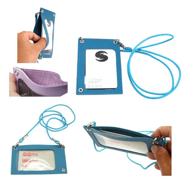 シンプルなデザインはビジネスシーンで最適。取り外し可能なストラップを操作すれば、胸ポケットに収まる縦型、名刺としてスタンダードな横型どちらにも使用できます。ポケット内側には窓と同じ素材のストッパーが付いています。縦型にした時、中の名刺の落下を防ぐ細やかな配慮で使いやすい仕様になっています。カード類など紙以外の素材はストッパーに掛かりにくいので、縦型でのご使用はお控えください。長時間身につけるアイテムだけに、使っていて楽しい気分になれるモノを持ちたいですね。