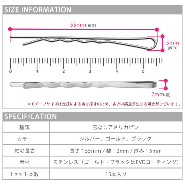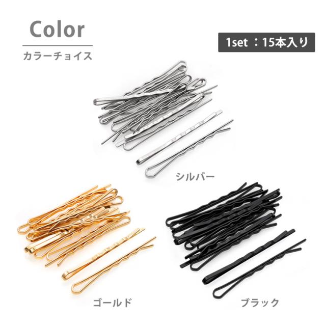 金属アレルギー対応 ヘアピン 15本セット アメリカピン ウェーブ 玉なし シルバー ゴールド ブラック まとめ髪 髪留め へアアレンジ ヘアアクセサリー