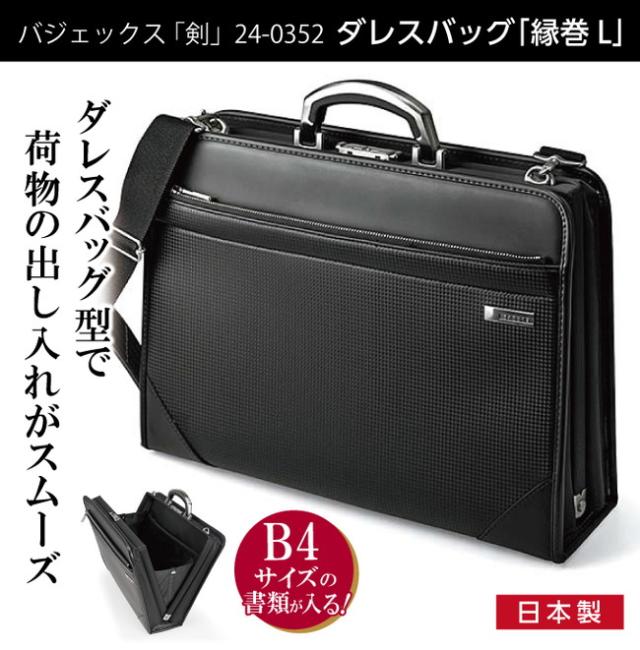 国産 日本製 バジェックス 剣(つるぎ) ダレスバッグ 縁巻L ブラック ビジネス ビジネスバッグ 鞄(代引不可)【送料無料】