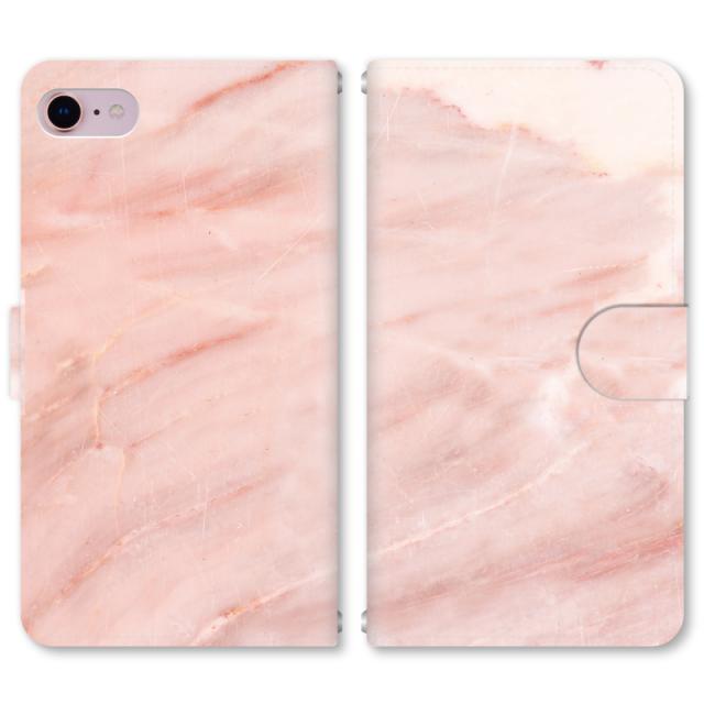 スマホケース 手帳型 iPhone13 iPhoneSE2 アイフォン 8 aquos sense GooglePixel xperia galaxyなど多機種制作対応 m332_大理石 ピンク