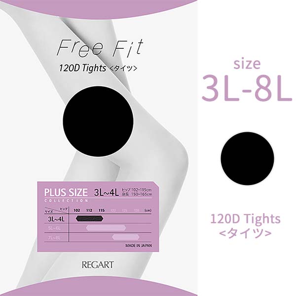 大きいサイズ ストッキング レディース Free Fit ゆったりタイツ 120デニール (FFT-202) 1足‐3L 4L 5L 6L 7L 8L 抗菌防臭 股ずれ防止 つま先補強 吸汗 静電気防止 保湿 レガルト