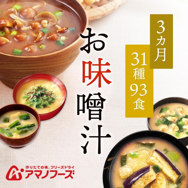 アマノフーズ フリーズドライ 減塩 入り 味噌汁 3ヶ月 31種93食 詰め合わせ セット 【 送料無料 】 インスタント味噌汁 常温保存 減塩味噌汁 いつものおみそ汁 旨だし まとめ買い 防災 備蓄 非常食 保存食 バレンタイン 2026 ホワイトデー