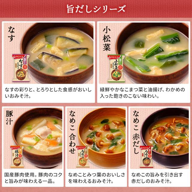 毎日食べたくなる いつものおみそ汁 味噌汁の具 にこだわった いつものおみそ汁 贅沢 通常商品より 塩分 25%カット 健康 をアシスト 減塩 いつものおみそ汁 旨だし お味噌汁 の4シリーズ