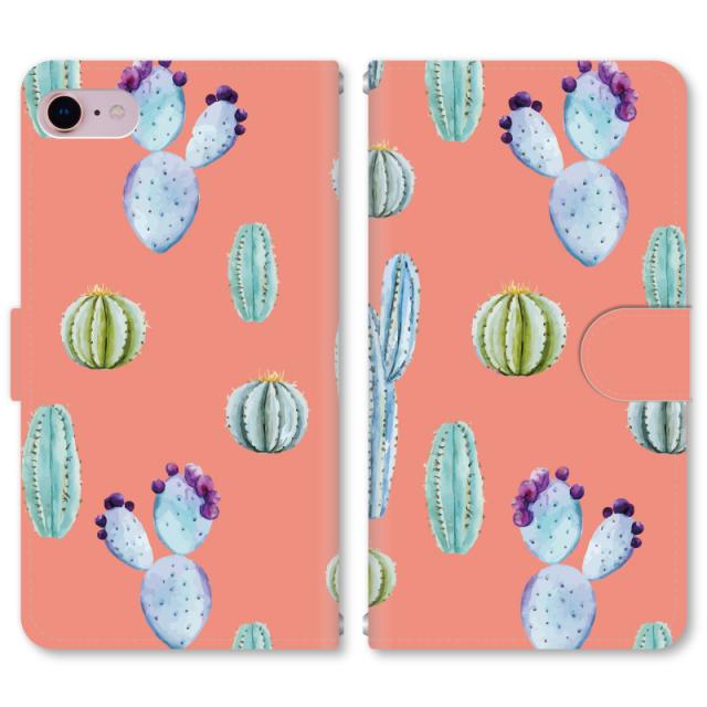 スマホケース 手帳型 iPhone13 iPhoneSE2 アイフォン 8 aquos sense GooglePixel xperia galaxyなど多機種制作対応 m408_サボテン[オレンジ]