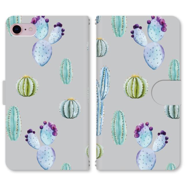 スマホケース 手帳型 iPhone13 iPhoneSE2 アイフォン 8 aquos sense GooglePixel xperia galaxyなど多機種制作対応 m409_サボテン[グレー]