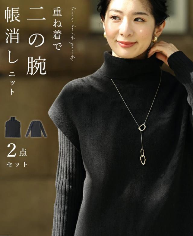 20251213sale セットアップ レディース zl00007bk 重ね着で二の腕帳消し。2点セットのニットトップス cawaii ニットベスト レディース 長袖 予約 スタンダード オケージョン お呼ばれ 通勤 きれいめ 上品 ミセス 60代 40代 50代 30代