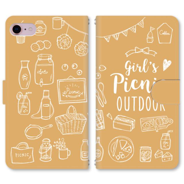 スマホケース 手帳型 iPhone13 iPhoneSE2 アイフォン 8 aquos sense GooglePixel xperia galaxyなど多機種制作対応 m410_ピクニック[オレンジ]