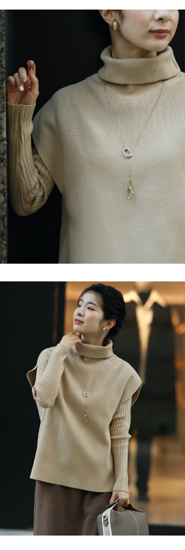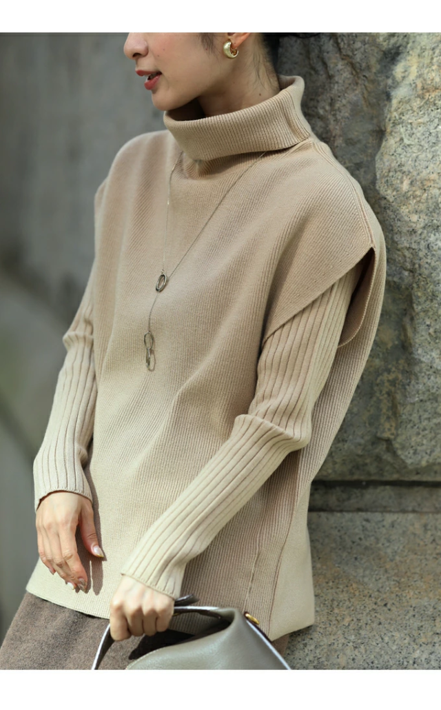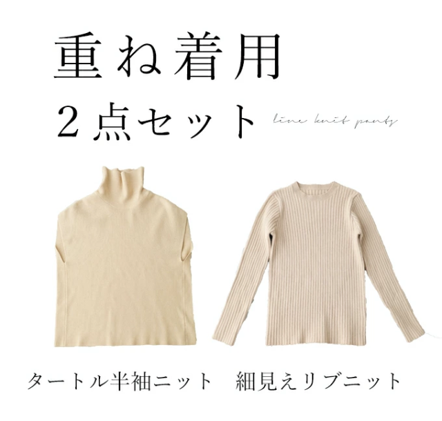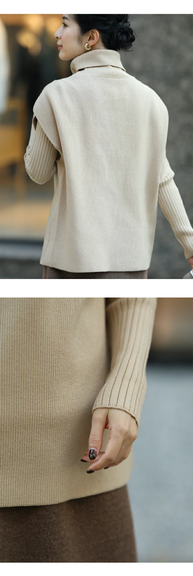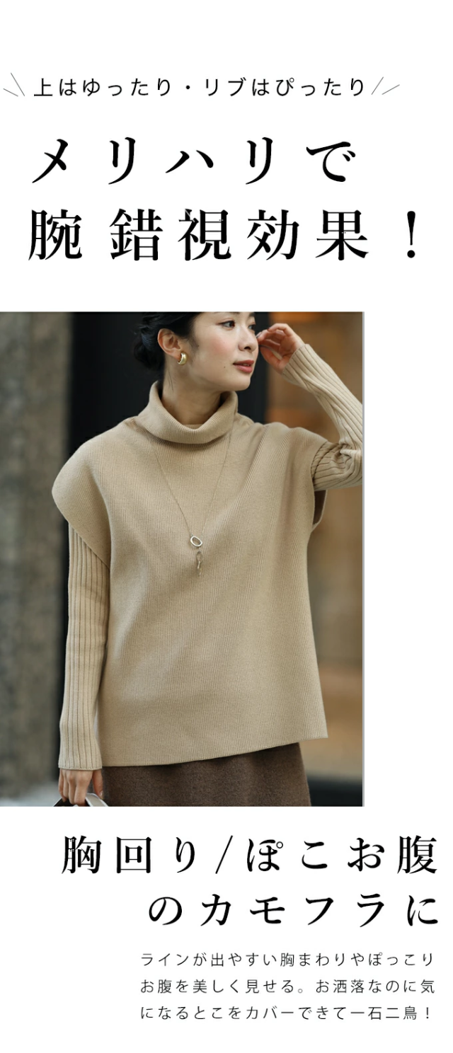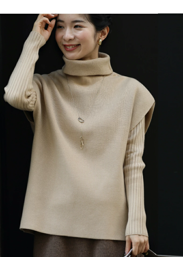20251213sale 重ね着で二の腕帳消し。2点セットのニットトップス (ベージュ)(S~M/L~2L対応)zl00007be cawaii セットアップ レディース ニット ベスト タートルネック 重ね着風 ゆったり リブ 体型カバー レイヤード 福袋