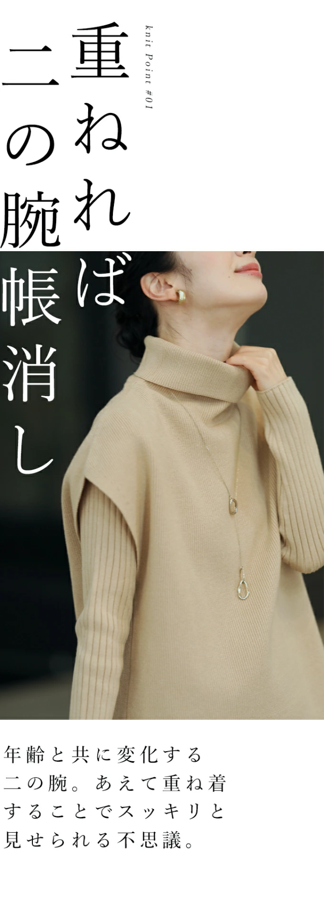 重ね着で二の腕帳消し。2点セットのニットトップス