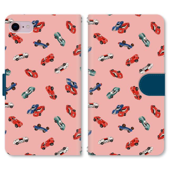 スマホケース 手帳型 iPhone13 iPhoneSE2 アイフォン 8 aquos sense GooglePixel xperia galaxyなど多機種制作対応 m469_くるま[ピンク]