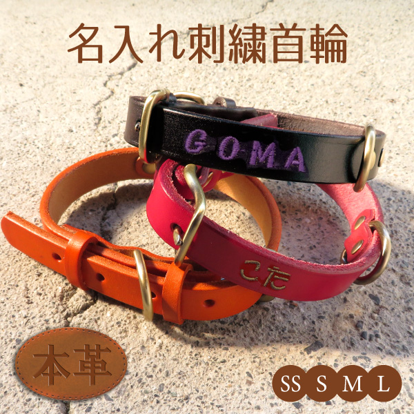 犬 首輪 本革 迷子札 名入れ 刺繍 犬の首輪 犬用首輪 高級質 ペット もしもの時に安心 刺繍 gp-collar-35-n
