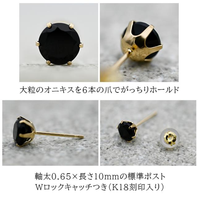メンズピアス 片耳 18金 18K オニキス 大粒 5mm シンプル セカンドピアス つけっぱなし 男性 女性