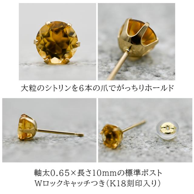 メンズピアス 片耳 18金 18K シトリン 大粒 5mm シンプル セカンドピアス つけっぱなし 男性 女性
