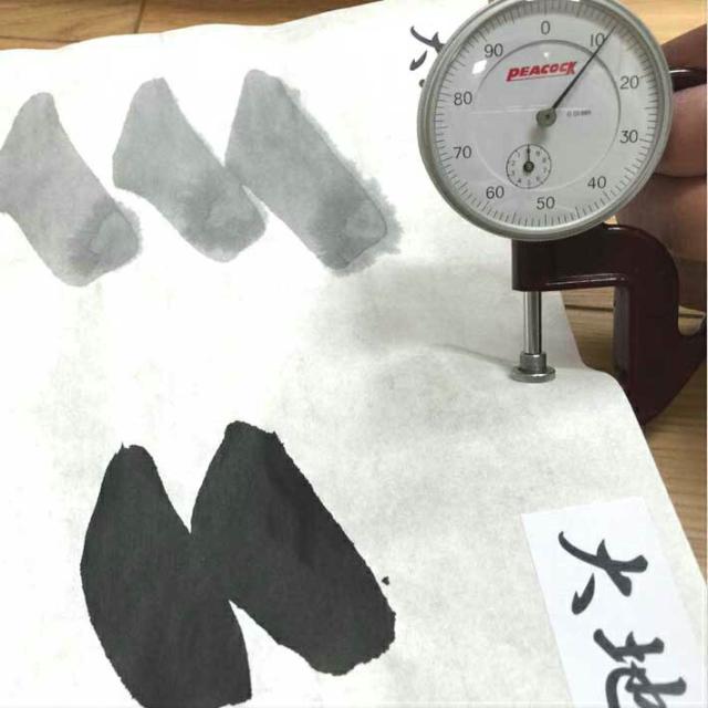 にじみが程よくあり紙に墨が染み込み易いので書き味が良いです。やや生成りがかった色合いで、仕上がりも暖かい作品になります。丈夫で、乾いてからも紙が縮みません。