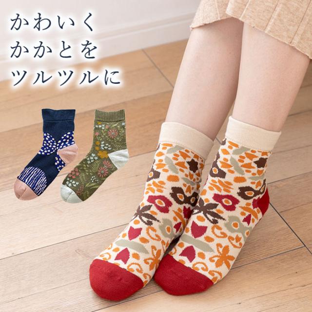 かかとツルツルソックス 選べるカラー 靴下 レディース かかと ツルツル 角質除去 角質 かかと 保湿 かかとケア かわいい おしゃれ 柄 暖かい 冷え対策 冷え性 末端冷え性 寒さ対策 あったか ボタニカル 幾何学 サークル カカト 潤い 保湿