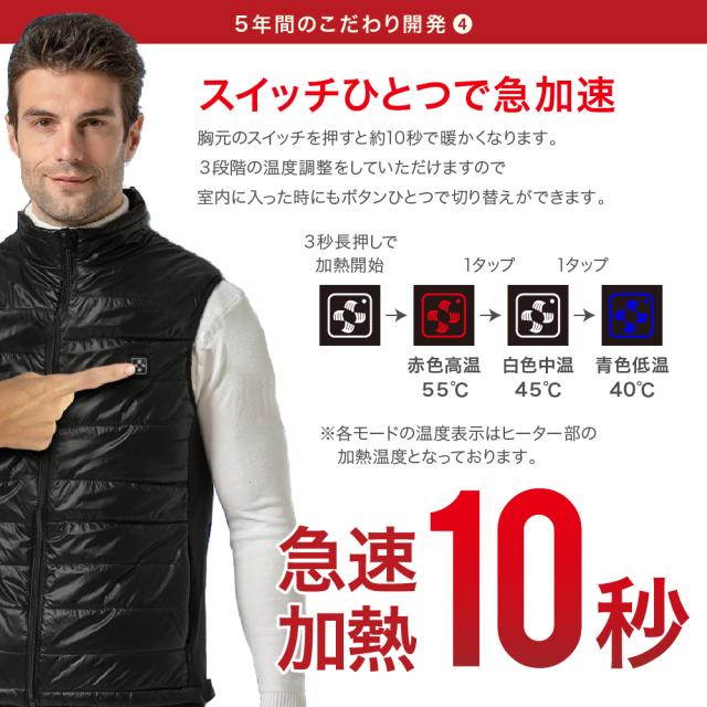 即暖約10秒!スイッチオンで包み込む暖かさ!