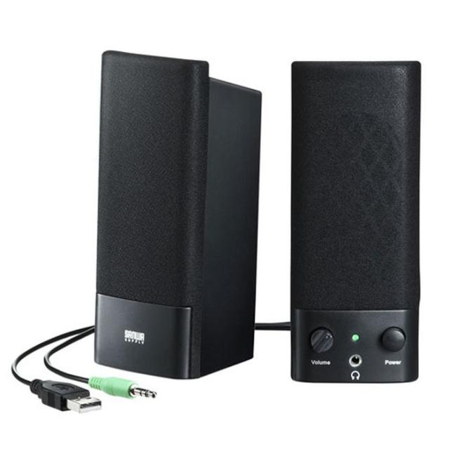 即納 代引不可 USB電源マルチメディアスピーカー ヘッドホンジャック搭載 アンプ内蔵 小型 パワフルサウンド スピーカー 音響機器 ブラック サンワサプライ MM-SPL2NU3
