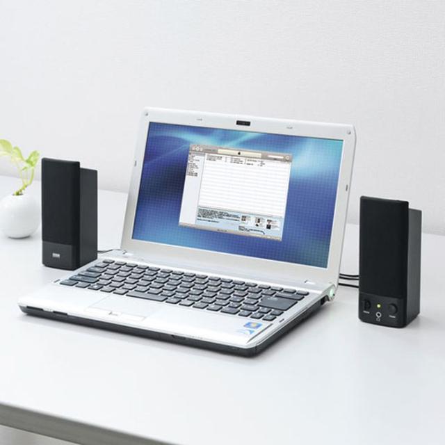 実用最大出力1W(0.5W+0.5W)のマルチメディアスピーカーです。アンプ内蔵でヘッドホンステレオの出力端子やパソコンの音声端子につなぐだけで音楽を楽しめます。USBポートから電源を供給するのでコンセント周りが煩雑になりません。ボリュームコントロールとパワーON・OFFスイッチが分かれているのでスイッチを入れれば いつもの音量ですぐに音楽を楽しめます。深夜や周りに気を使う環境にも便利なヘッドホン端子を内蔵しています。