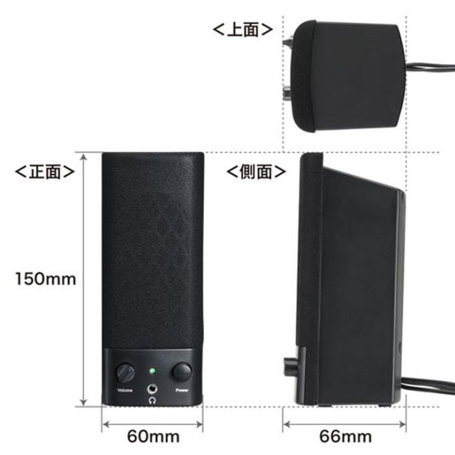 スピーカー スピーカ speaker メディアスピーカー メディアスピーカ マルチメディアスピーカー マルチメディアスピーカ 音響機器 USB電源 ヘッドホンジャック搭載 アンプ内蔵 小型 パワフルサウンド 黒 ブラック black