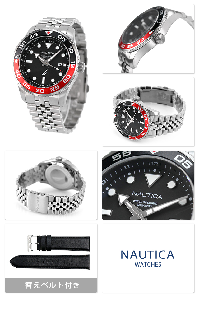 | 付属品 | 保証書・NAUTICAオリジナルボックス バネ棒外し 替えベルト付(レザー/ブラック) ※取扱説明書につきましては、メーカー公式ページよりご確認ください。 |