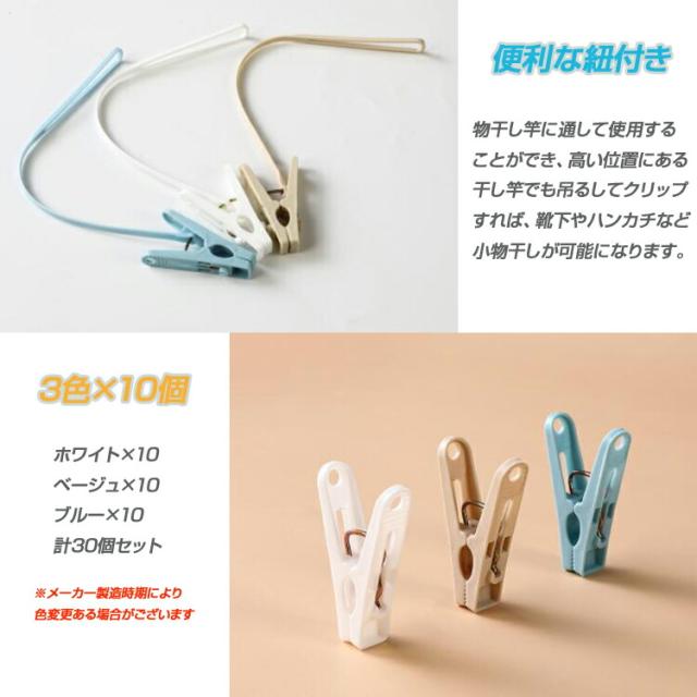 【30個セット】紐付き洗濯ばさみ 物干し竿対応 靴下 ハンカチ タオル 下着 袋止め 洗濯クリップ SJIACLO30S