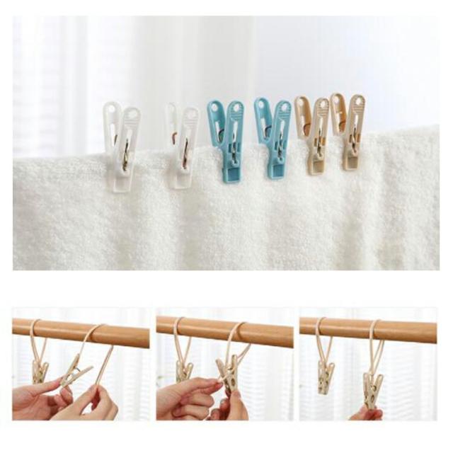紐付きのクリップで、物干し竿やハンガーやラインに吊り下げして使えます。