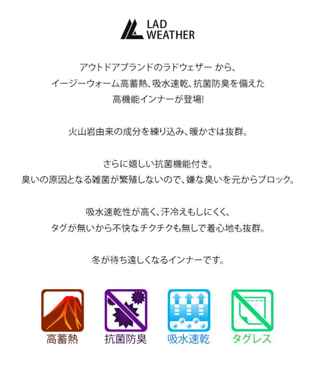 ラドウェザー LAD WEATHER 火山の力で暖かい!臭わない極楽肌着 タートルネック