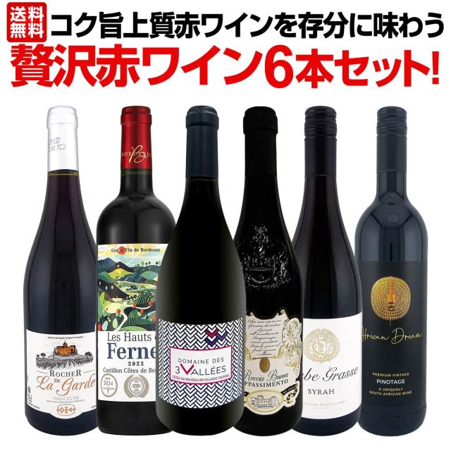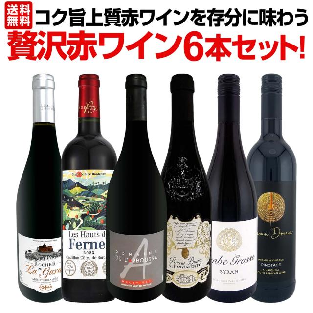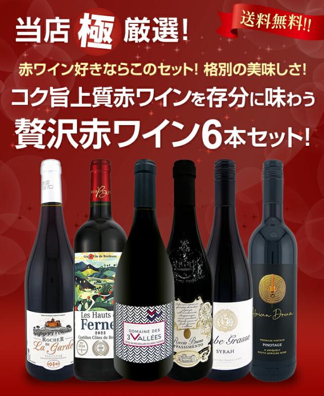 赤ワイン好きのための当店≪極≫厳選! 1本あたり1,280円(税込)で贅沢赤ワイン! 飲み応えたっぷりの満足コク旨レッド6本!