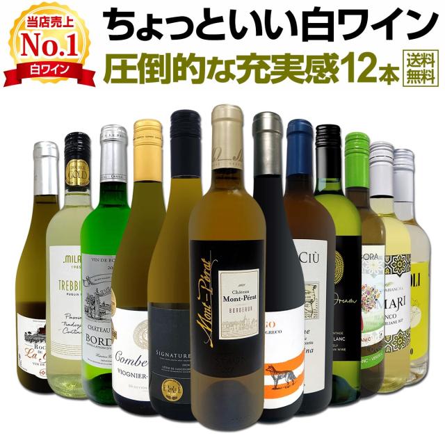 圧倒的な充実感!ちょっといい白ワイン12本セット! 1本当たり1,250円(税込)以下で人気の各国から、 贅沢にオススメ白ワインばかりを12本揃えました!