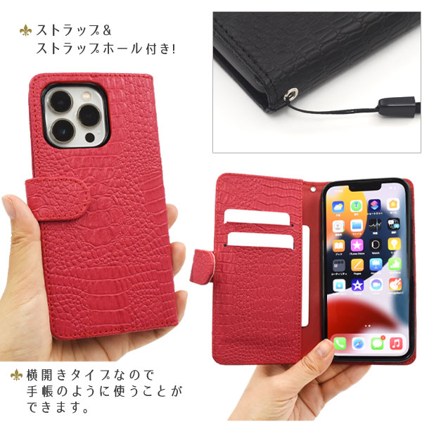 スマホケース iPhone13Pro 手帳型 クロコダイル レザーデザイン スマホケース 上品 オシャレ 携帯ケース エレガント iPhoneケース お洒落 アイフォンケース コンサバ おしゃれ スマホカバー ワニ柄 クロコダイルケース 大人っぽい スマートフォンケース