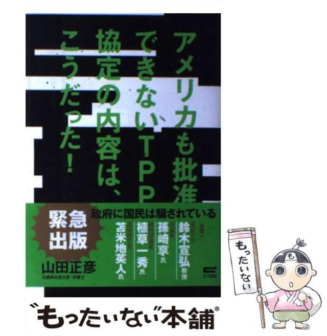 商品名:【中古】 アメリカも批准できないTPP協定の内容は、こうだった! / 山田 正彦 / サイゾー [単行本(ソフトカバー)]【メール便送料無料】