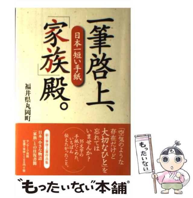 商品名:【中古】 一筆啓上、「家族」殿。 日本一短い手紙 / 福井県丸岡町 丸岡町文化振興事業団 / サンマーク出版 [単行本]【メール便送料無料】