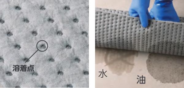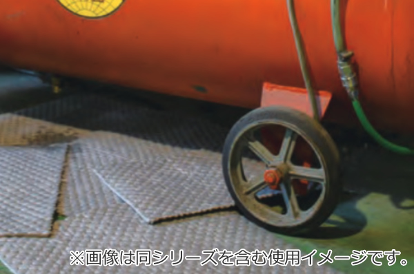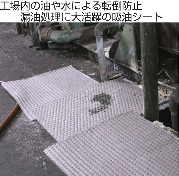 溶着点が多く吸収スピードが抜群の油・水両用の厚さ約2mmの吸油シートです。とっさの処理に迅速に対応できるので、工場内の機械まわりの漏油処理や、床・通路などの油による転倒防止にもおすすめです。
