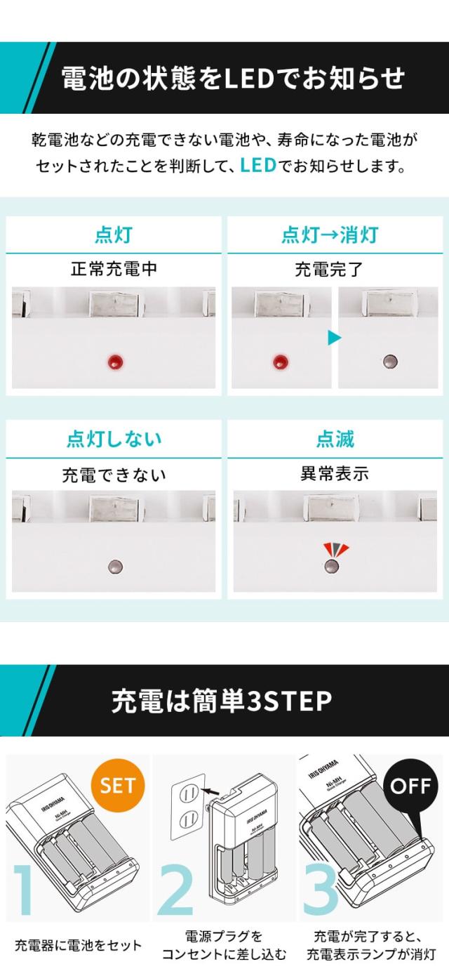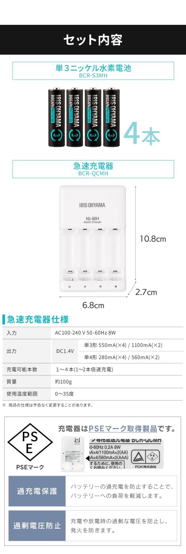充電池 電池 充電器 急速 ビックキャパ リチャージ 急速充電器セット 単3形4本パック付き BCR-SQC3MH/4S ビックキャパリチャージ 専用充電器 セット 単3形電池付き 電池充電 充電器 急速 充電池 電池 単三形 単三 単3形 単3 防災 緊急 避難 備蓄 予備 アイリスオーヤマ