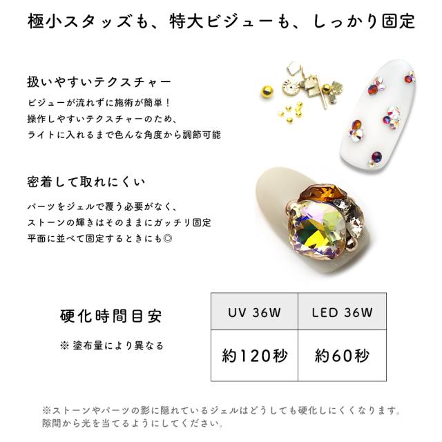 パーツをジェルで覆う必要がなく、ストーンの輝きはそのままにガッチリ固定!
