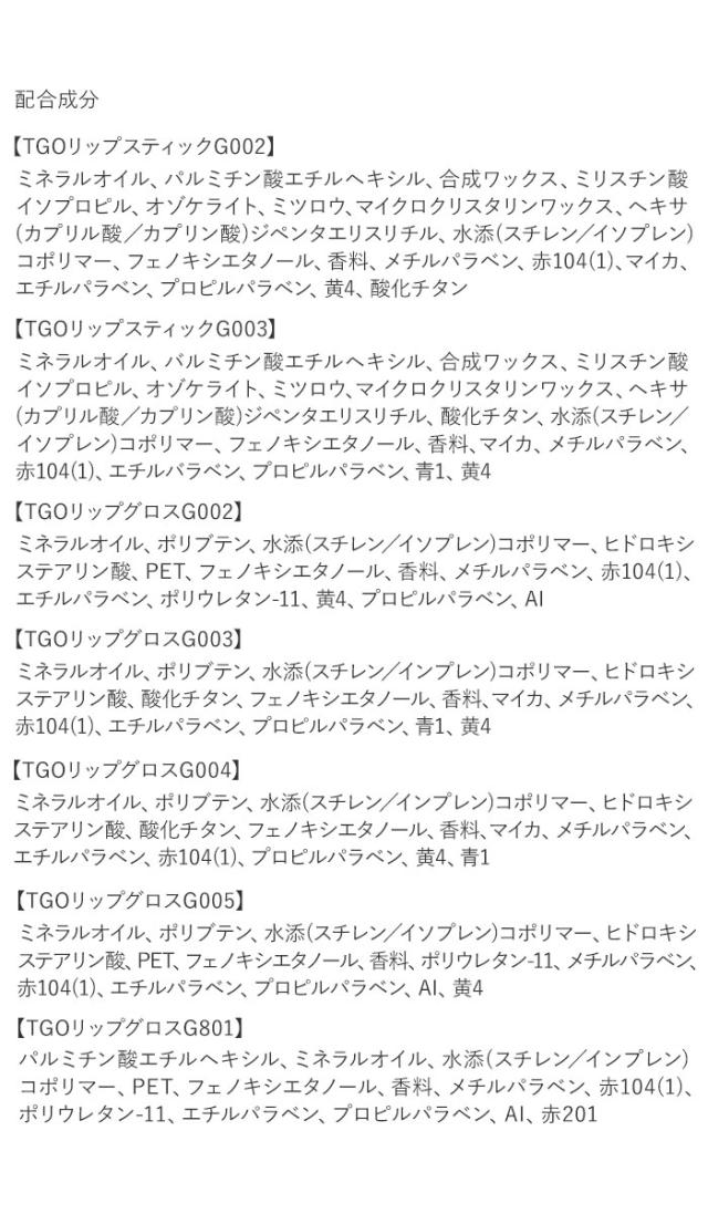 | 素材 | ※成分は画像をご覧ください。 |