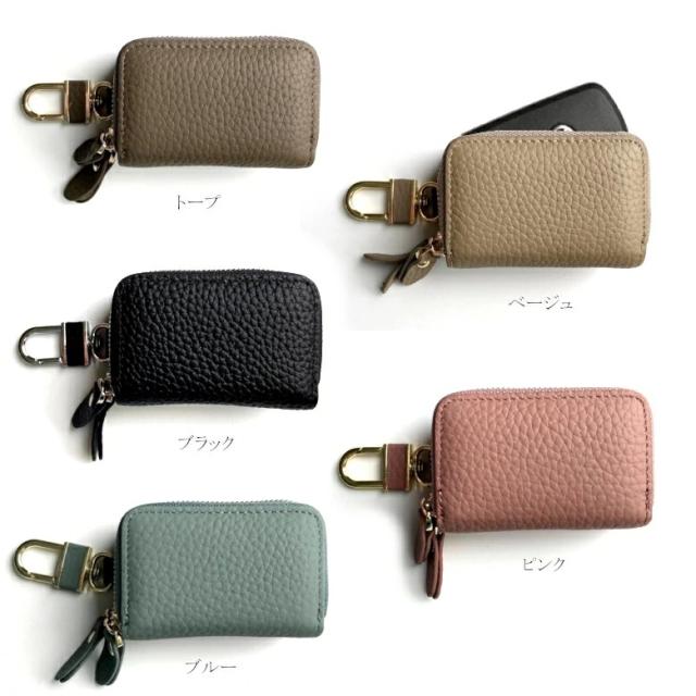 新品 キーケース レディース スマートキーケース 牛革 本革 シボ革 ファスナー ダブルファスナー 鍵 ケース メンズ プレゼント ギフト 誕生日 【売れ筋】黒 ベージュ ピンク ブルー ベージュ ブラック ブラウン シボ スマートキーケース コンパクト おしゃれ 送料無料