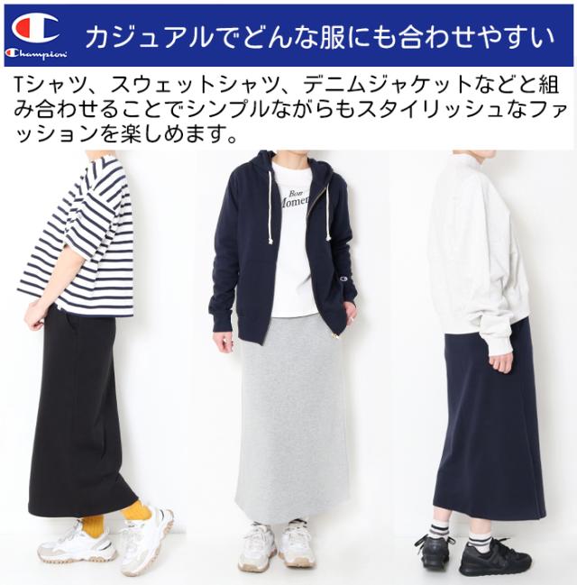 スウェットスカート ロングスカート チャンピオン Champion スカート スウェット ブランド マキシ丈 CW-Y212 グレー ブラック ネイビー M L 定番 無地 カジュアル ラク かわいい ロゴ オールシーズン 杢グレー
